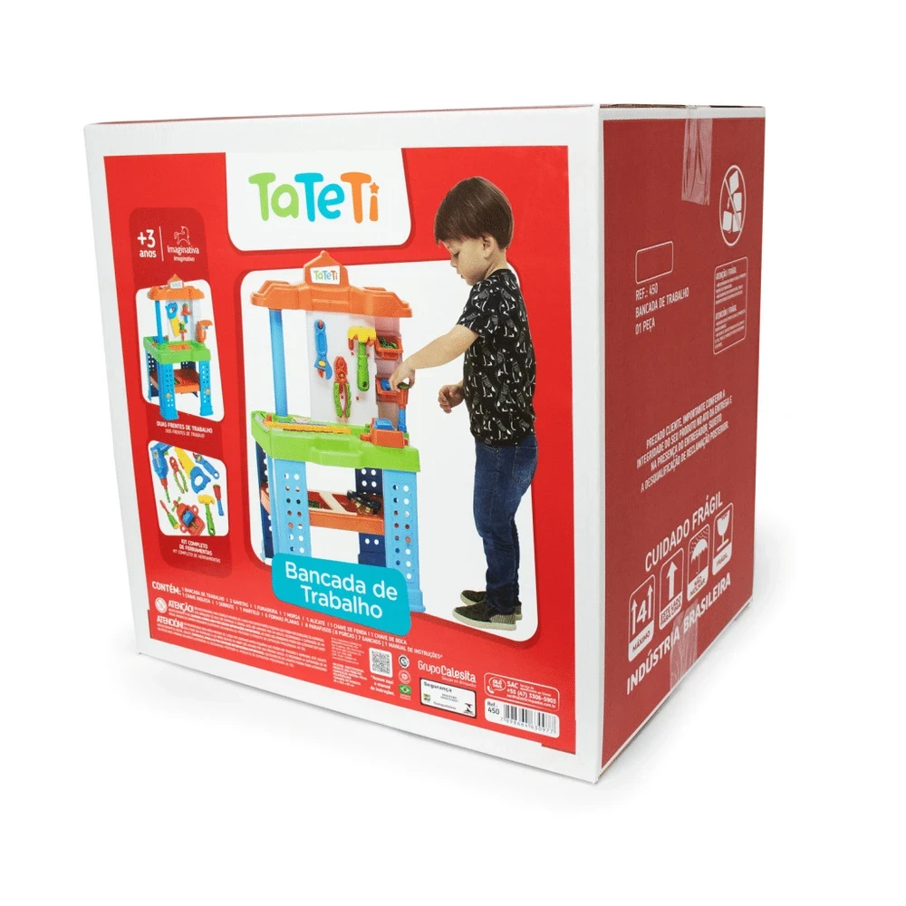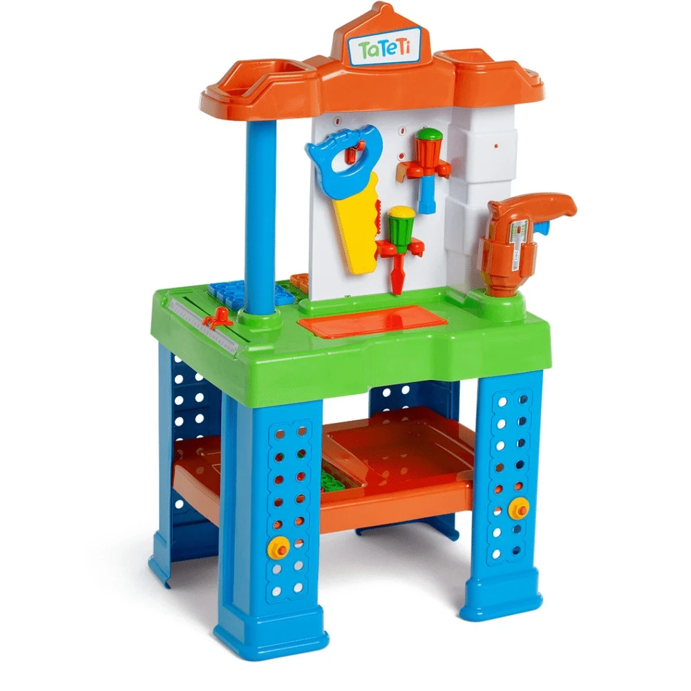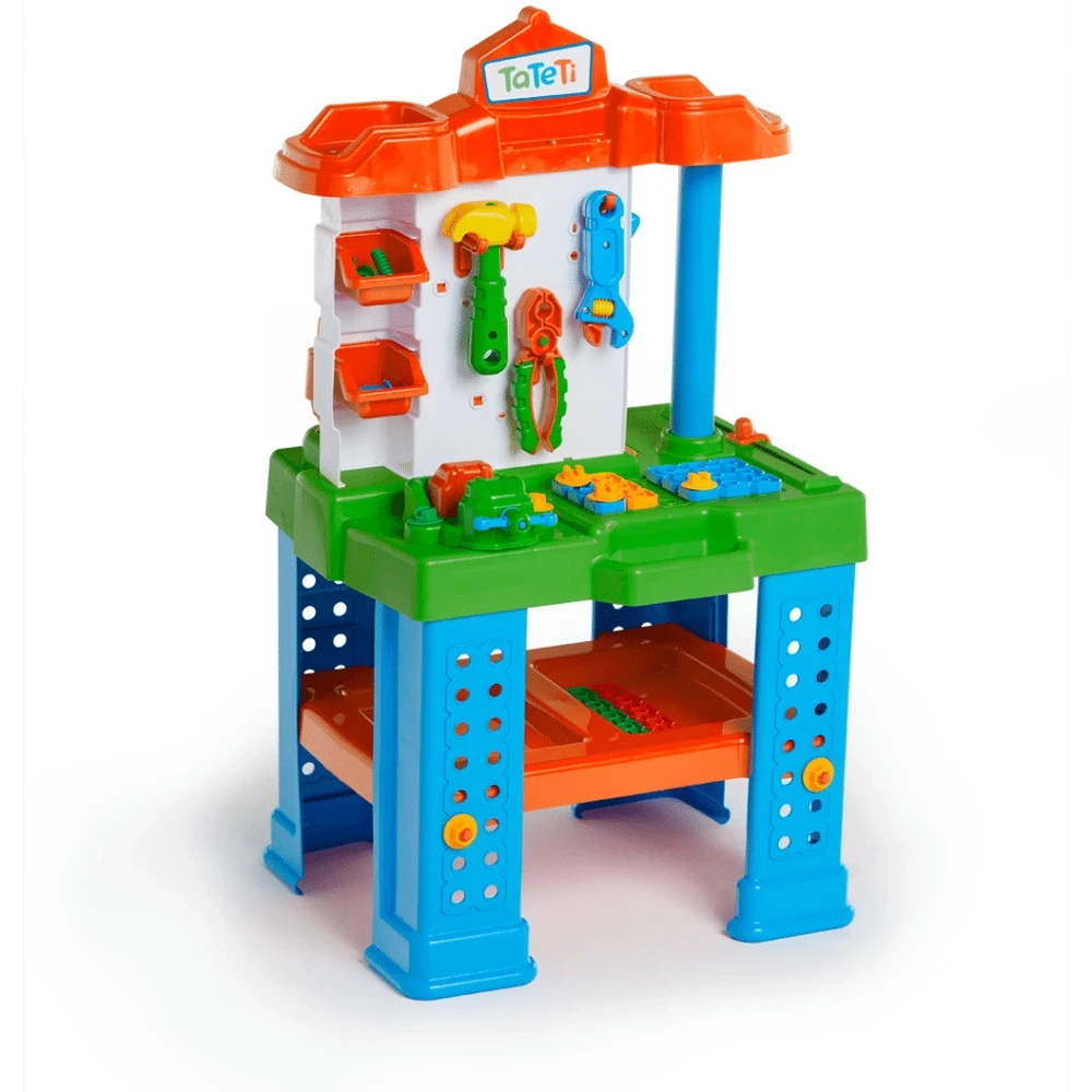 Ferramentas para criar, montar e desmontar! A Bancada de Trabalho Tateti é perfeita para os pequenos que adoram explorar o mundo da construção. Com duas frentes de trabalho e uma variedade de ferramentas, a brincadeira ganha vida com atividades de parafusar, montar, desmontar e imaginar novas criações todos os dias.