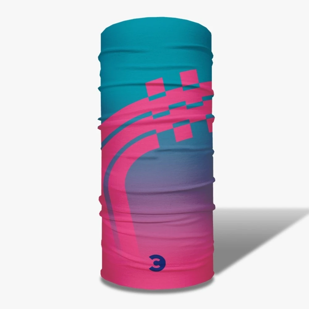 Palavras-chave: bandana azul e rosa, bandana esportiva, acessório para atividades ao ar livre, proteção contra sol e vento.