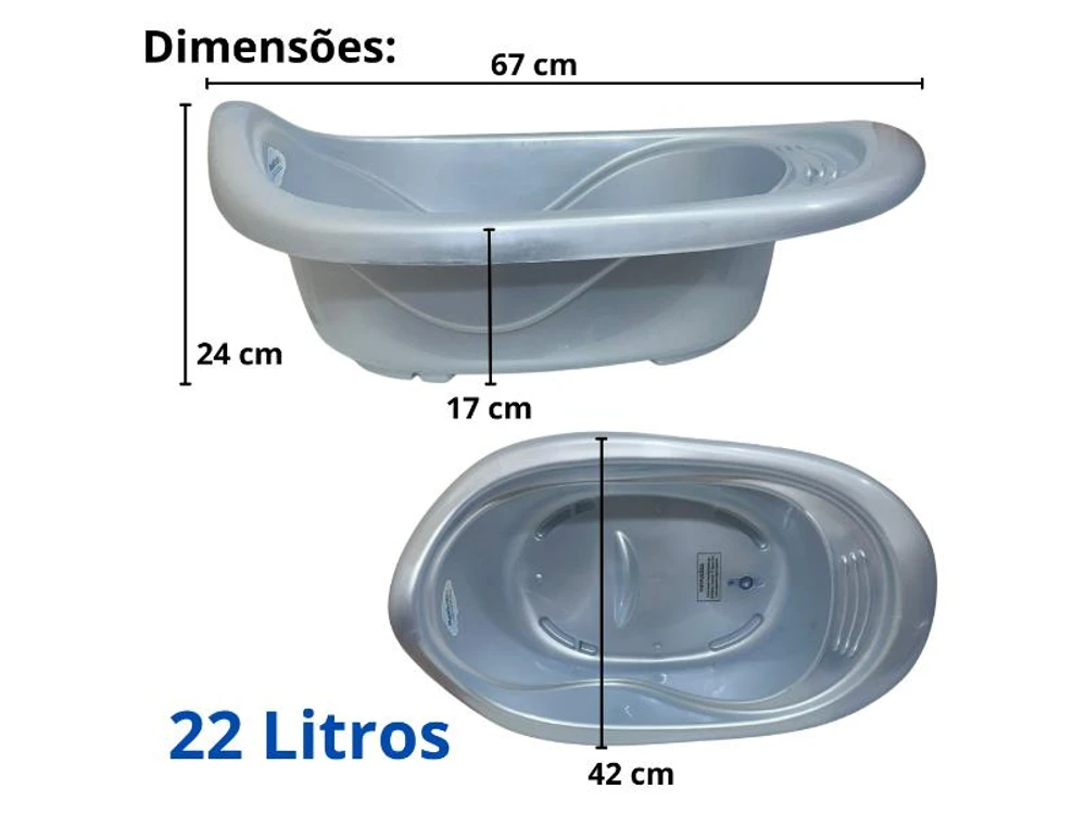 Com bordas reforçadas, possui espaço para sabonete e shampoo, acompanha válvula de silicone.