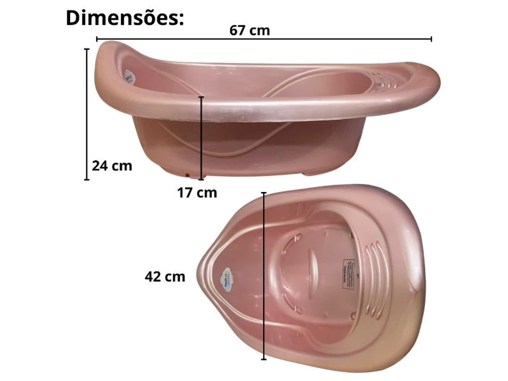 Banheira Baby 22 Litros ? PeroladoCor RosaBanheira Baby possui capacidade máxima de 22 litros.Produzida em polipropileno (PP), é livre de BPA. Dispõe das cores azul perolado e rosa perolado.Com bordas reforçadas, possui espaço para sabonete e shampoo, acompanha válvula de silicone.