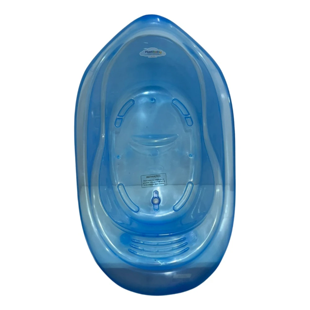 Banheira Bebê 22 Lts Valvula Água Transparente Plastibrasil Cor Azul Sem Desenho