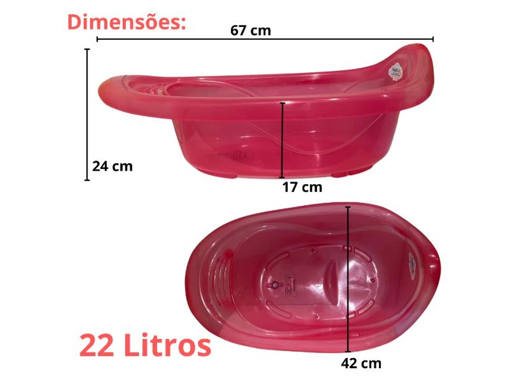 Banheira Bebê 22 Lts Valvula Água Transparente Plastibrasil Cor Rosa Lisa