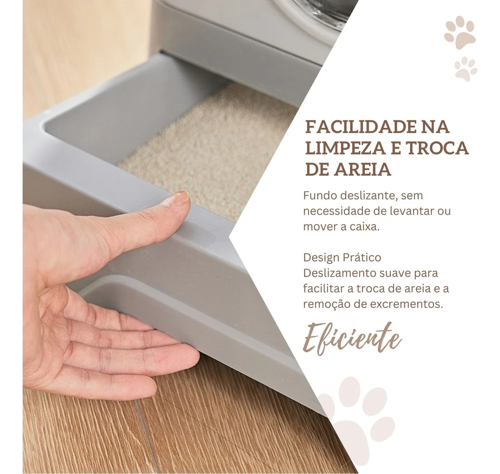 Limpeza descomplicada: fundo deslizante que facilita a troca de areia sem precisar levantar a tampa;