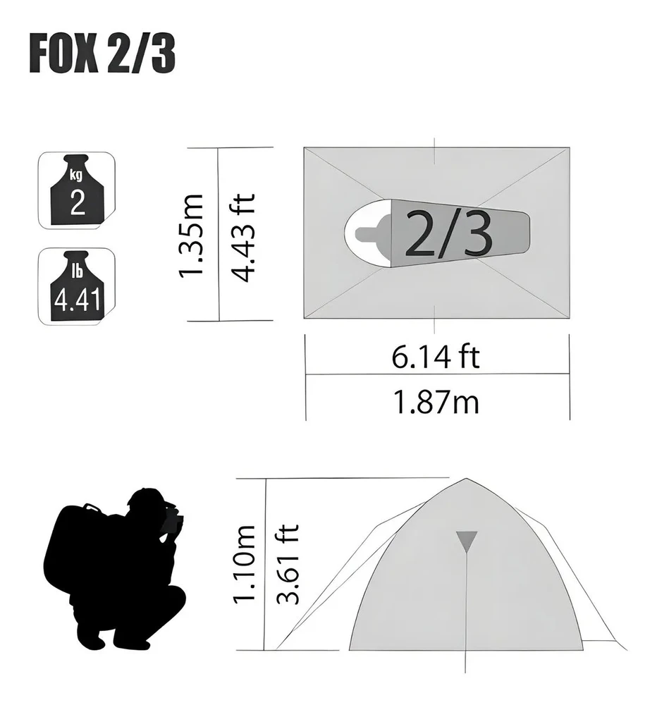 Barraca Nautika Fox 2/3 Pessoas 1800 mm Coluna d’Água Proteção no Camping