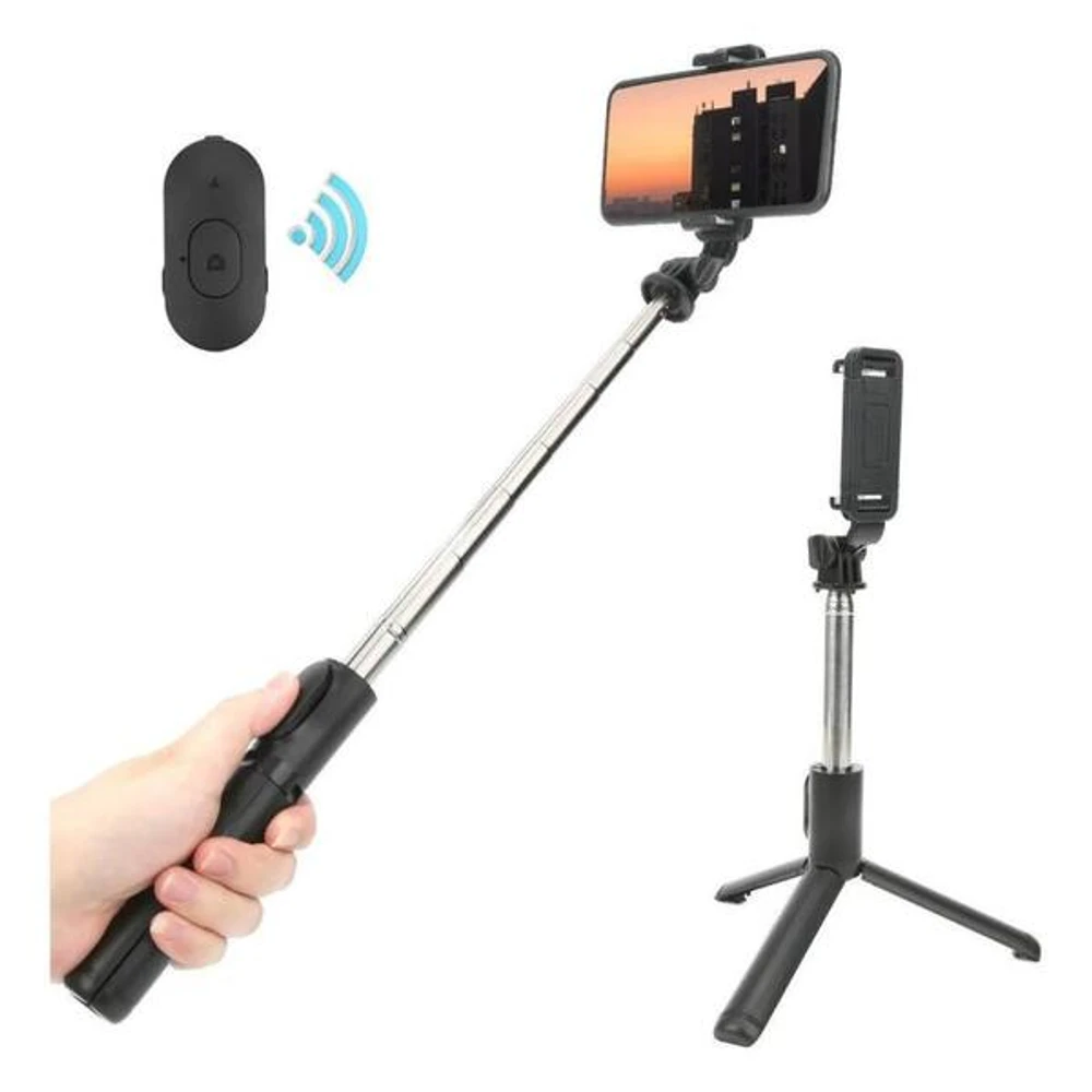 Bastão é próprio para tirar varias selfies, acompanhado de um controle remoto que permite você tirar vários auto-retratos e fotos em grupo livremente. É leve e portátil, podendo ser facilmente utilizado em qualquer lugar. Vareta telescópica que chega a aprox. 70 cm de comprimento para uso, permitindo obter maior alcance de tiro. As pernas do tripé são dobráveis para fotografia mais estável e gravação de vídeo com ótima resolução. Junto ao tripé vem com um suporte de telefone. O controle remoto incluso serve para o sistema Ios ou sistema Android de 4.3 ou superior.