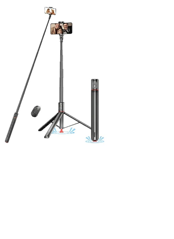 A haste de alumínio ajustável de 1,77 m permite fotos amplas, completas e criativas em qualquer cenário. O controle remoto magnético Bluetooth alcança até 10 metros, liberando suas mãos e facilitando cliques perfeitos.