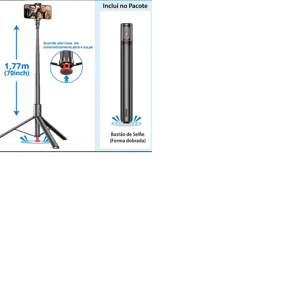 Conheça o Bastão de Selfie Drop com tripé automático e controle remoto Bluetooth. Abra o tripé em segundos e capture selfies ou vídeos sem esforço, protegendo suas unhas.