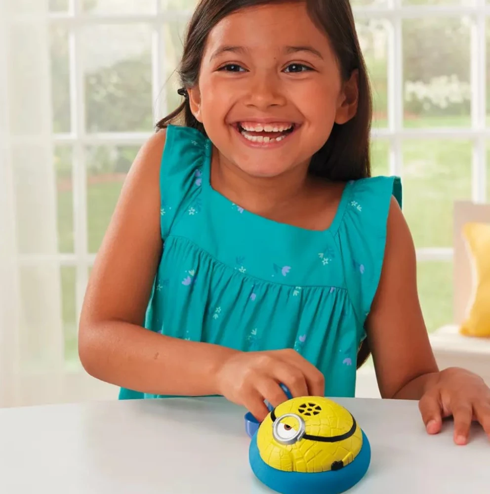 O Mega Minion desliza sobre uma almofada de ar sobre superfícies lisas, como em um jogo de air hockey, e deve ser jogado para frente e para trás usando as alças