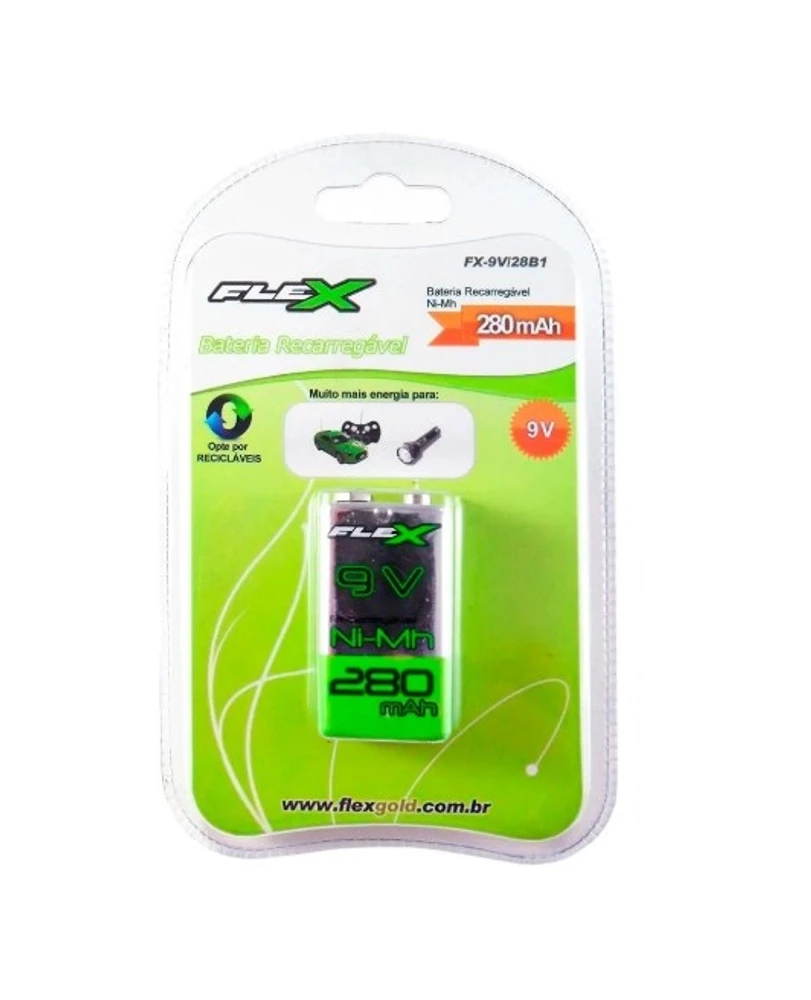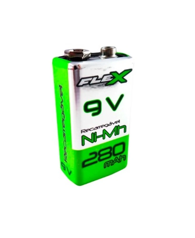 A Bateria Recarregável 9V 340mAh da Flex é uma bateria produzida pela Flex, que pode ser recarregada diversas vezes. Um modelo ideal para ser utilizada em dispositivos eletrônicos que exigem alta potência e durabilidade, como controles remotos, lanternas, brinquedos, instrumentos musicais, entre outros.