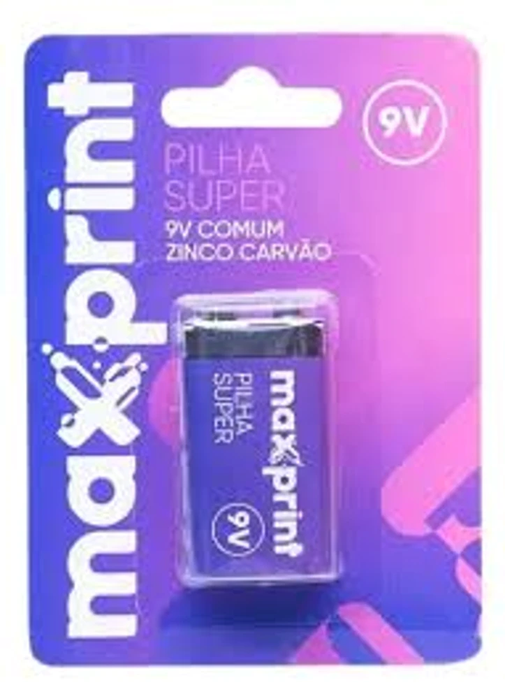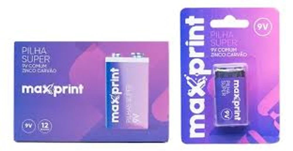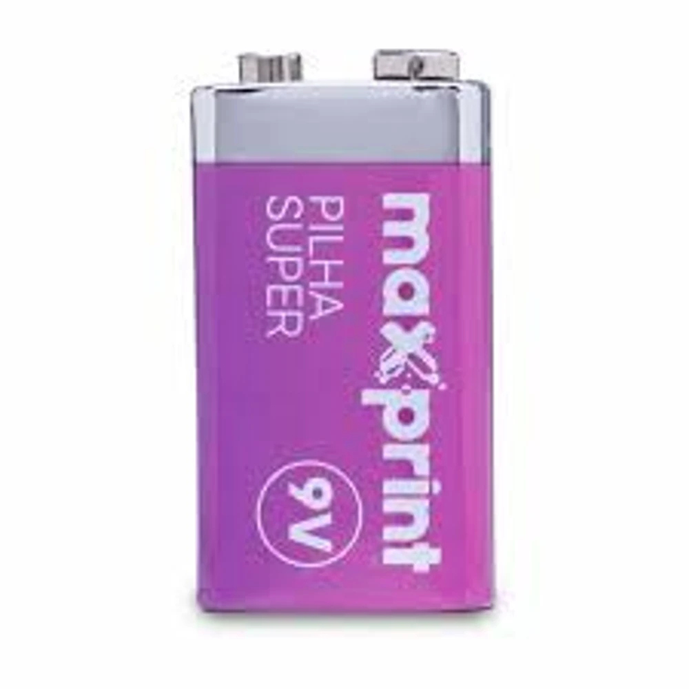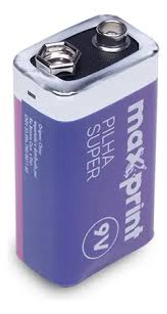 BATERIA SUPER 9V 6F22 MAXPRINT A BATERIA SUPER 9V 6F22 DA MAXPRINT É UMA PILHA DE 9 VOLTS, GERALMENTE DO TIPO ZINCO-CARVÃO (SUPER) OU ALCALINA, USADA PARA DISPOSITIVOS QUE PRECISAM DE ENERGIA CONSTANTE, COMO DETECTORES DE FUMAÇA, MICROFONES SEM FIO E BRINQUEDOS, SENDO UMA OPÇÃO ECONÔMICA PARA APARELHOS DE CONSUMO MODERADO OU QUE EXIGEM DESCARGAS RÁPIDAS, COM O MODELO "SUPER" INDICANDO UMA VERSÃO DE CARVÃO/ZINCO MAIS BÁSICA, ENQUANTO A ALCALINA OFERECE MAIOR DURABILIDADE.