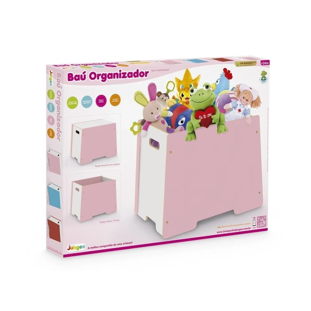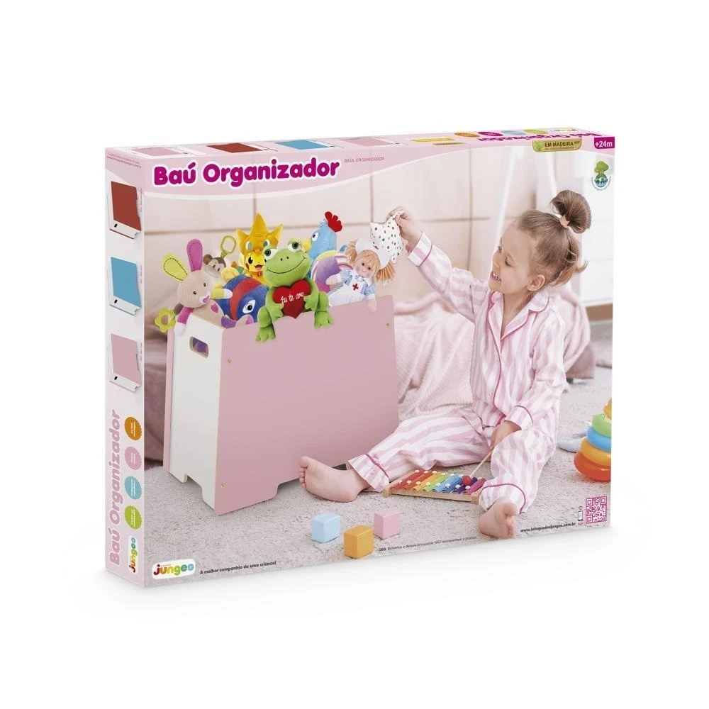 Organize o quarto com charme e segurança com o Baú Organizador Rosa da Junges! Feito em madeira de reflorestamento, possui design funcional, pintura atóxica e espaço interno de 70 litros para guardar brinquedos e objetos com praticidade. Ideal para manter tudo no lugar e incentivar a organização desde cedo!