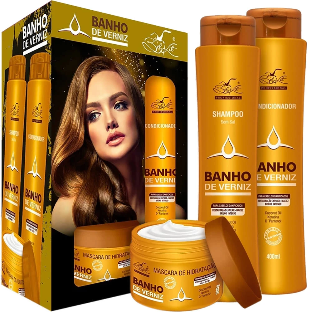 Belkit Banho de Verniz - Kit Revitalização Capilar Brilho Intenso (3 Produtos)