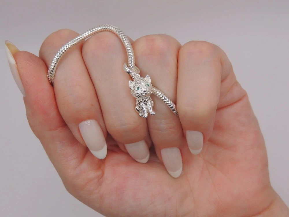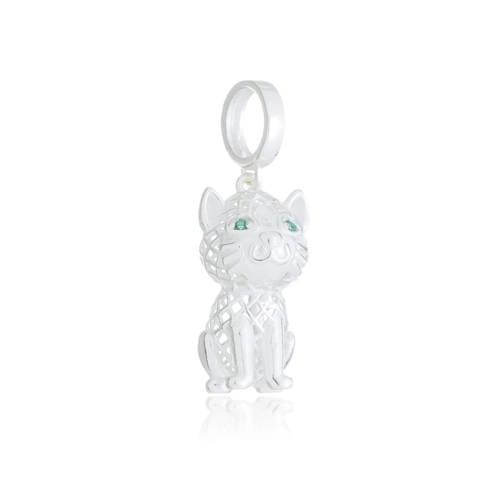 Berloque Gato Telado Olhos Verdes Dê um toque de charme e mistério à sua coleção com o nosso magnífico berloque de gato! Inspirado na graça e na beleza dos felinos.