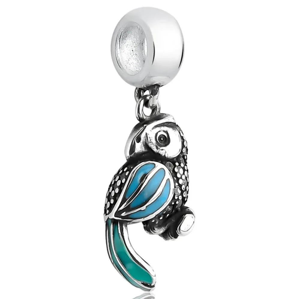 Berloque Papagaio Cravejado de zircônias para pessoas que amam a natureza e os animais. Coloque em sua pulseira esse lindo berloque tropical!