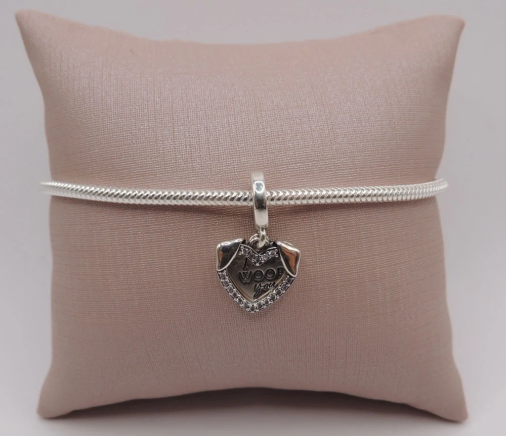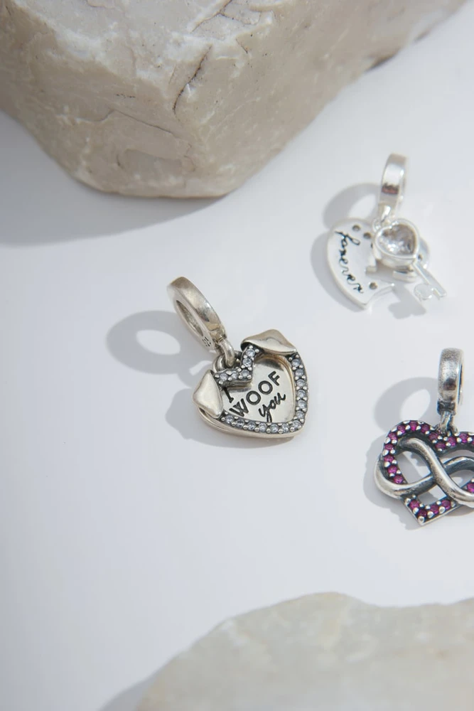Berloque Pingente Coração "I woof you" um meigo coração em 02 peças, cravejado zircônias, demonstre todo o seu amor com esse berloque, surpreendente e apaixonante !!