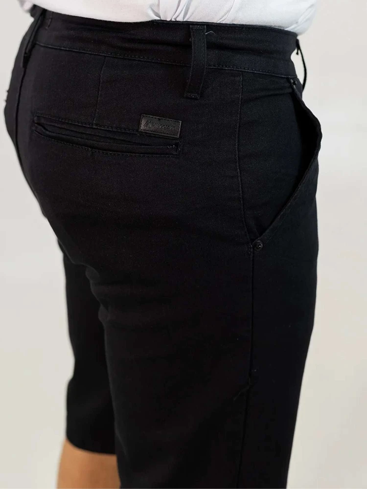 Modelagem clássica com corte reto e tecido de sarja encorpado, ideal para quem busca caimento confortável com aparência alinhada. O elastano garante mobilidade sem deformar, e a sarja mantém a estrutura mesmo após várias lavagens.