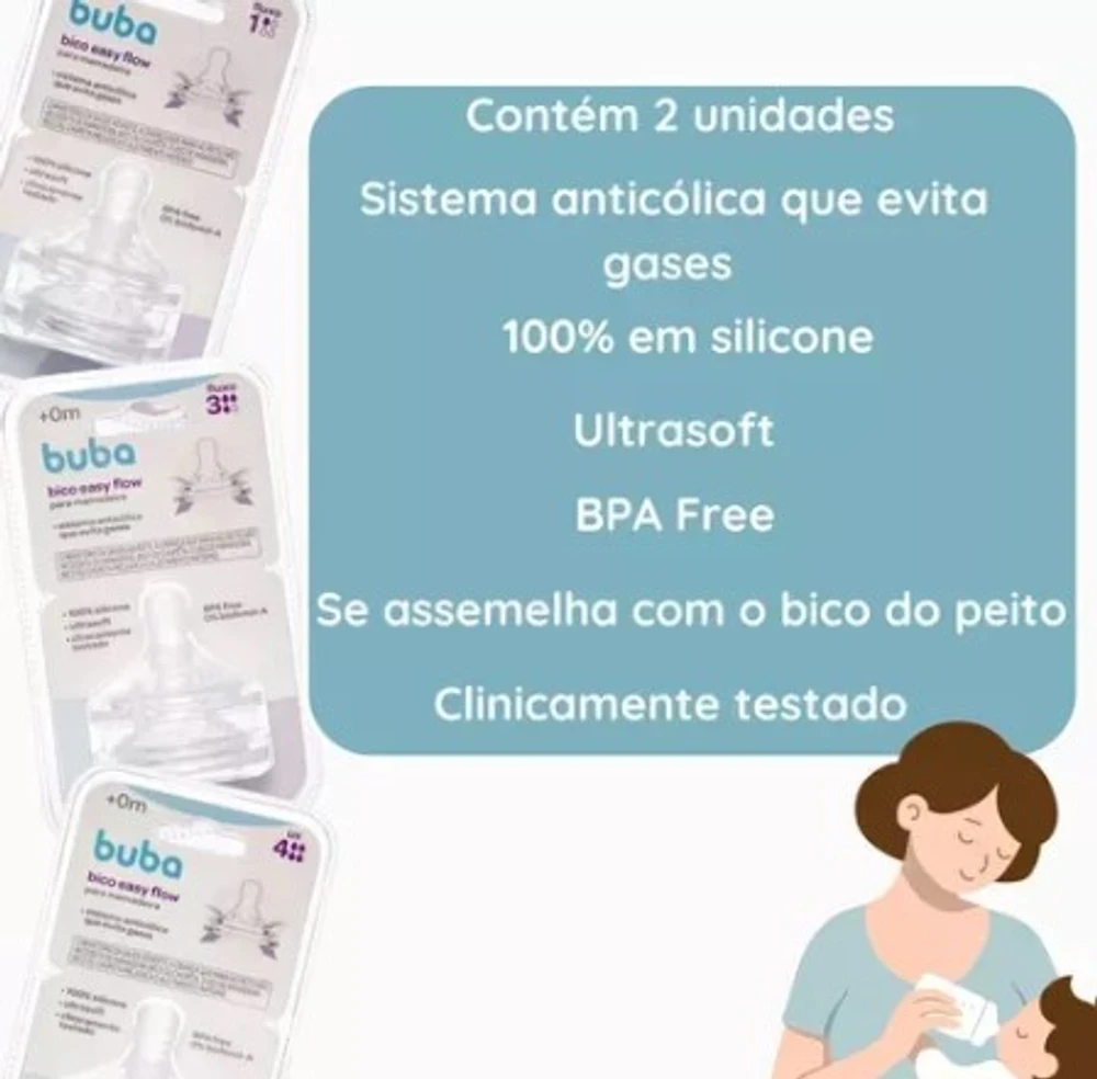 Com um formato anatômico e material de silicone ultra macio, esses bicos simulam a suavidade do peito materno, facilitando a transição para a mamadeira e promovendo um fluxo de líquido contínuo e controlado. Estes bicos são fabricados com materiais de alta qualidade e livres de BPA, assegurando que não haja substâncias prejudiciais à saúde do bebê.