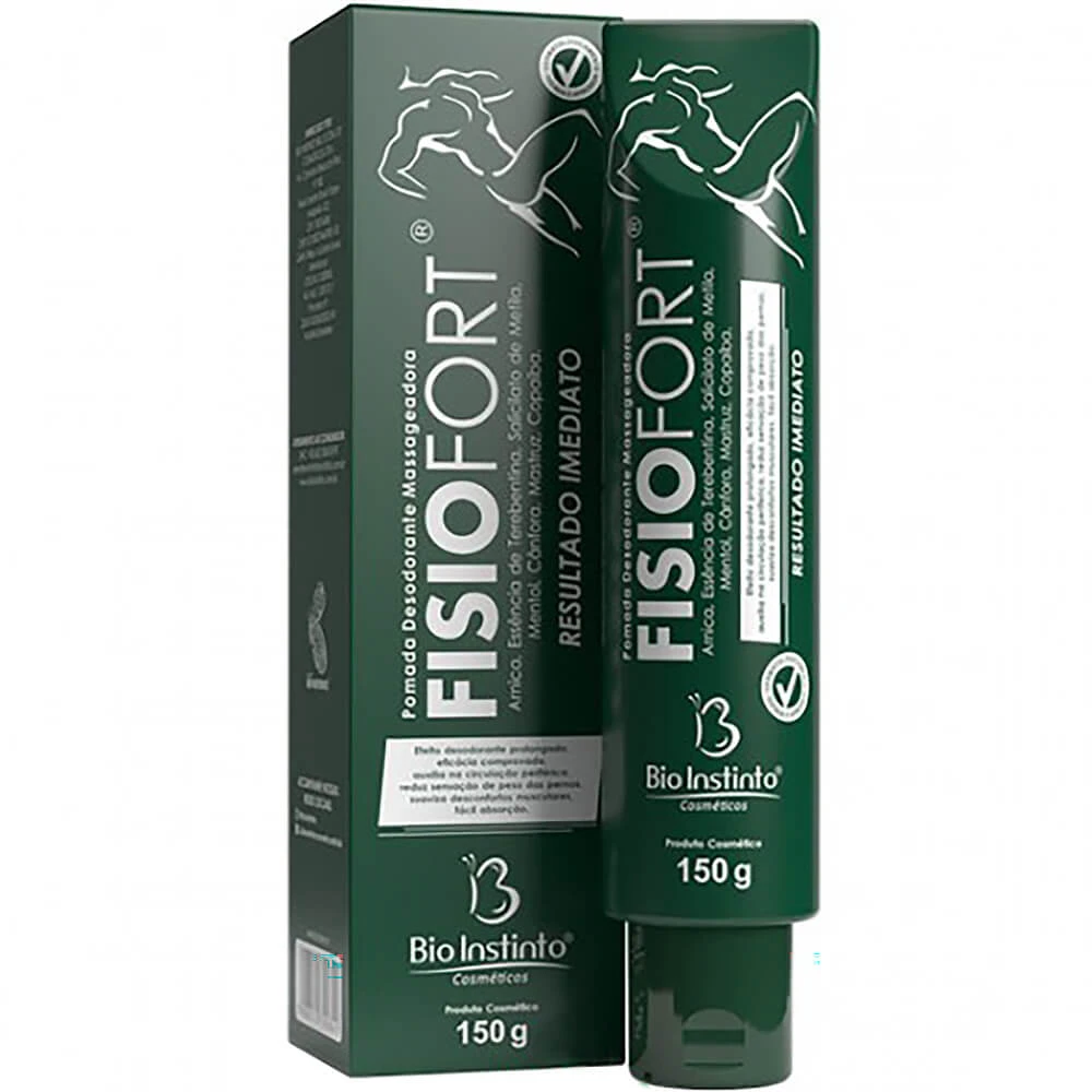 A pomada desodorante massageadora Fisiofort é uma fórmula avançada rica em ingredientes rubefacientes, concebida para proporcionar alívio imediato e conforto corporal. Com Arnica, essência de Terebentina, Salicilato de Metila, Mentol, Cânfora, Mastruz e Copaíba, essa pomada é formulada para acelerar a circulação periférica, reduzir a sensação de cansaço muscular e promover relaxamento.