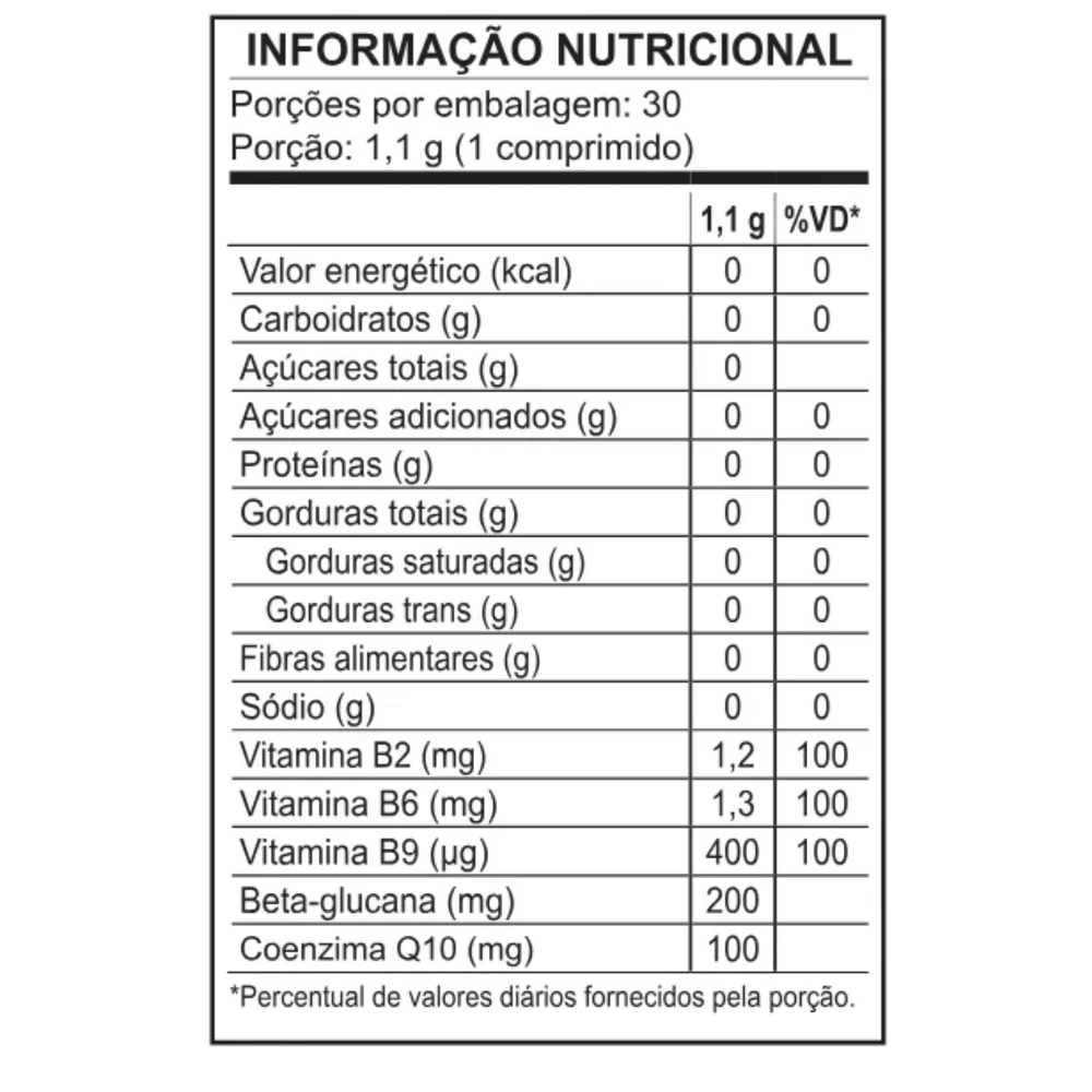 - Suplemento alimentar com Coenzima Q10 e Beta-Glucana de alta concentração