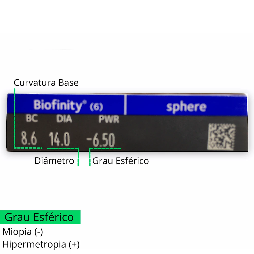Caixa com 6 Lentes de Contato (3 pares) do mesmo grau.