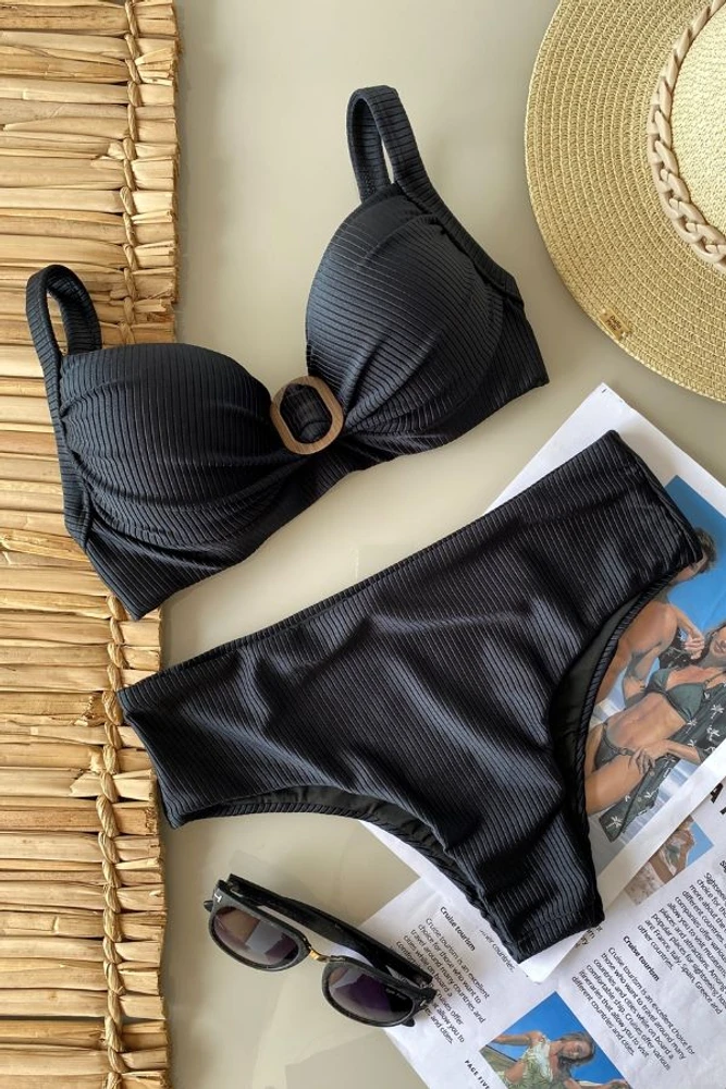 Biquíni com bojo fixo, base e alça reforçadas, com detalhe em metal na frente, calcinha hot pant, ideal para quem gosta de conforto e praticidade.