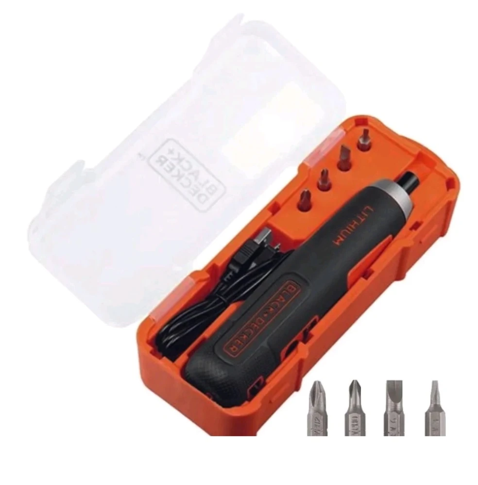Parafusadeira 4V DB40K4-LA com tecnologia pusch & go que facilita a troca das pontas. A parafusadeira 4V BD40K4-LA possui bateria de íons de lítio de 4V de 1,5 Ah com carregador usb, carregamento total da bateria em apenas 90 minutos. A parafusadeira BD40K4-LA possui medidor do nível de carga da bateria, desencapador de fios integrado para reparos elétricos e luz de LED que facilita o trabalho em locais escuros e de difícil acesso. A parafusadeira BD40K4-LA é ideal para montar, consertar, decorar, instalar e fixar parafusos.