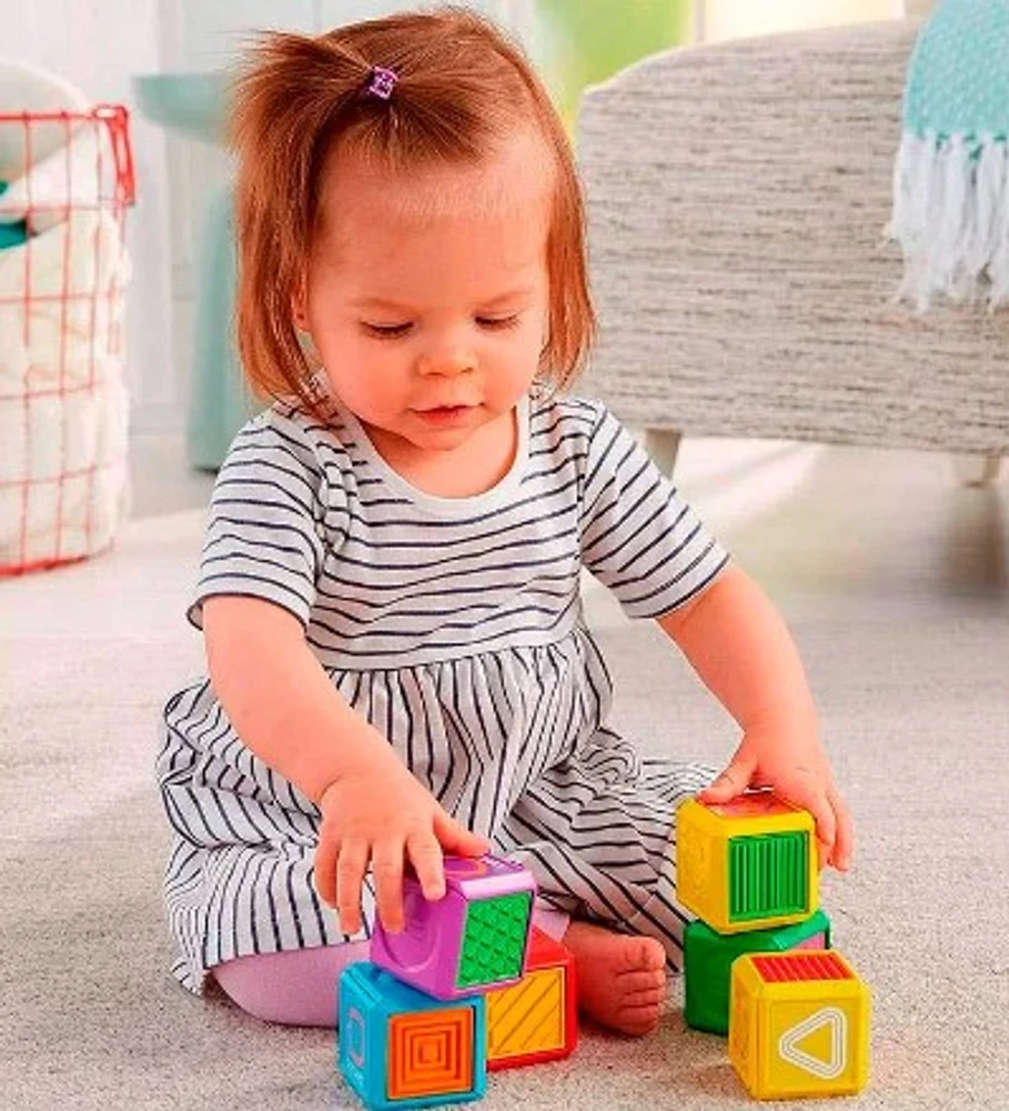 Com seis lados de brincadeira sensorial e várias atividades práticas, estes blocos mantêm as pequenas mãos ocupadas durante todo o dia.