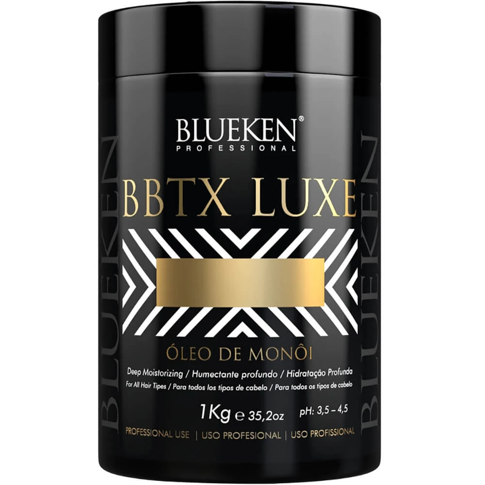 A BBTX Luxe Blueken foi especialmente desenvolvida com Óleo de monói, que têm a capacidade de penetração grandiosa nos fios, promovendo assim a intensa hidratação, reposição de massa, deixando os fios sem porosidade e devolvendo a beleza e brilho intenso, que foi desgastada por meio de químicas, relaxamentos, descoloração, exposição ao sol, cloro de piscina e etc...