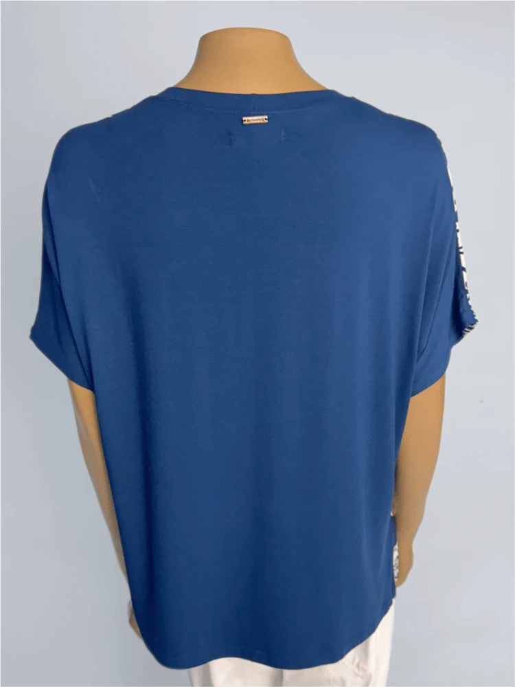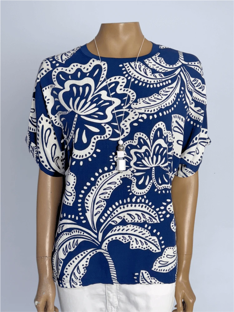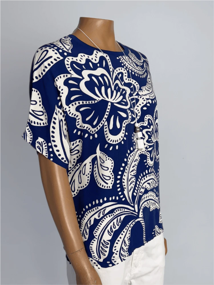 Blusa Feminina Azul Marinho Estampada Gola Redonda Soltinha VISCOSE COM VISCOLYCRA