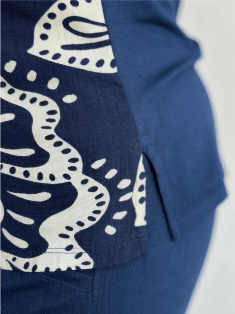 - Cor frente: Estampa Folhas Azul Marinho e Off White