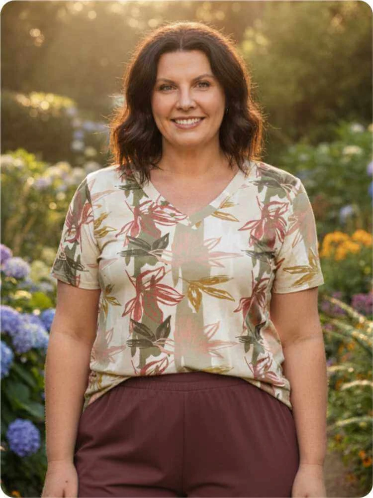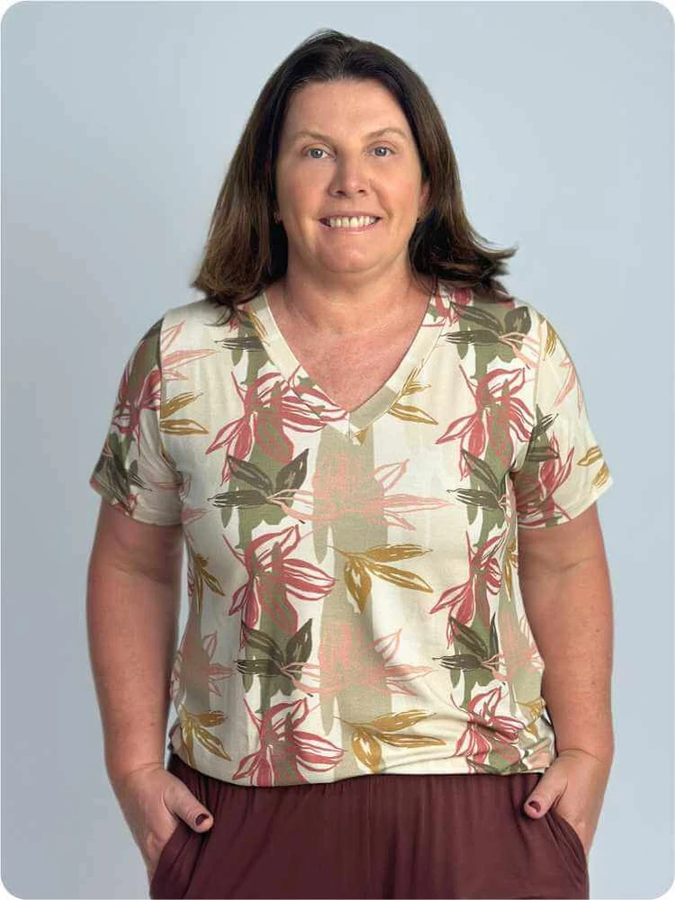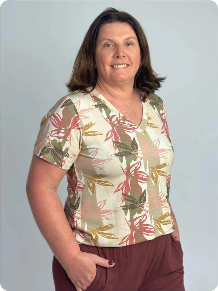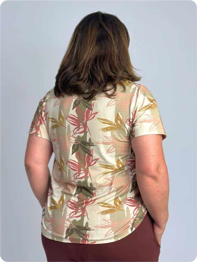 Blusa estampada feminina com gola V e manga curta, ideal para quem busca conforto e estilo em uma peça versátil. O tecido leve proporciona toque macio e frescor, perfeito para dias quentes ou para compor looks casuais com charme. A estampa floral em tons terrosos e rosados confere um visual elegante, que se destaca com facilidade. Seu corte levemente ajustado valoriza a silhueta, sem perder a liberdade de movimento. Uma escolha inteligente para quem deseja unir praticidade e moda, garantindo presença marcante em qualquer ocasião.