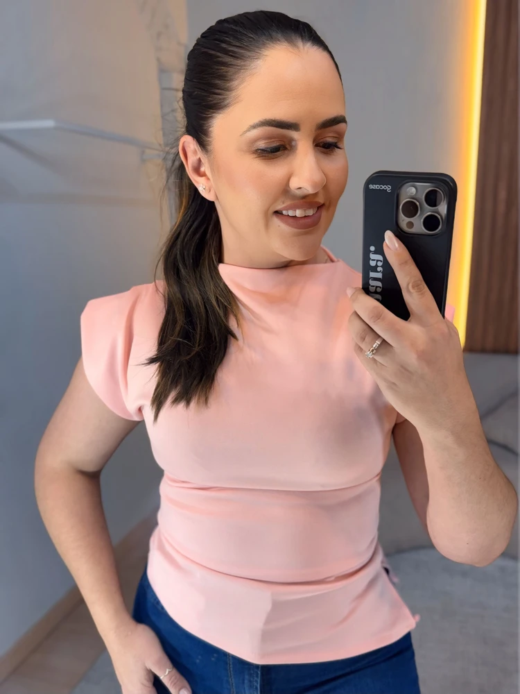 Confeccionada em tecido de toque macio e caimento leve, proporciona conforto ao longo do dia, sem perder a estrutura. A gola alta confere um ar elegante e contemporâneo, enquanto as mangas estruturadas criam um visual marcante e feminino, valorizando a silhueta. A modelagem levemente acinturada ajuda a desenhar o corpo de forma equilibrada, trazendo um ajuste bonito tanto por dentro quanto por fora da peça.