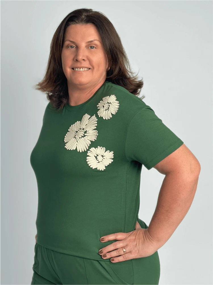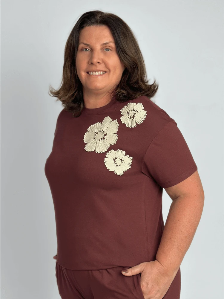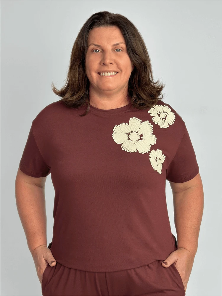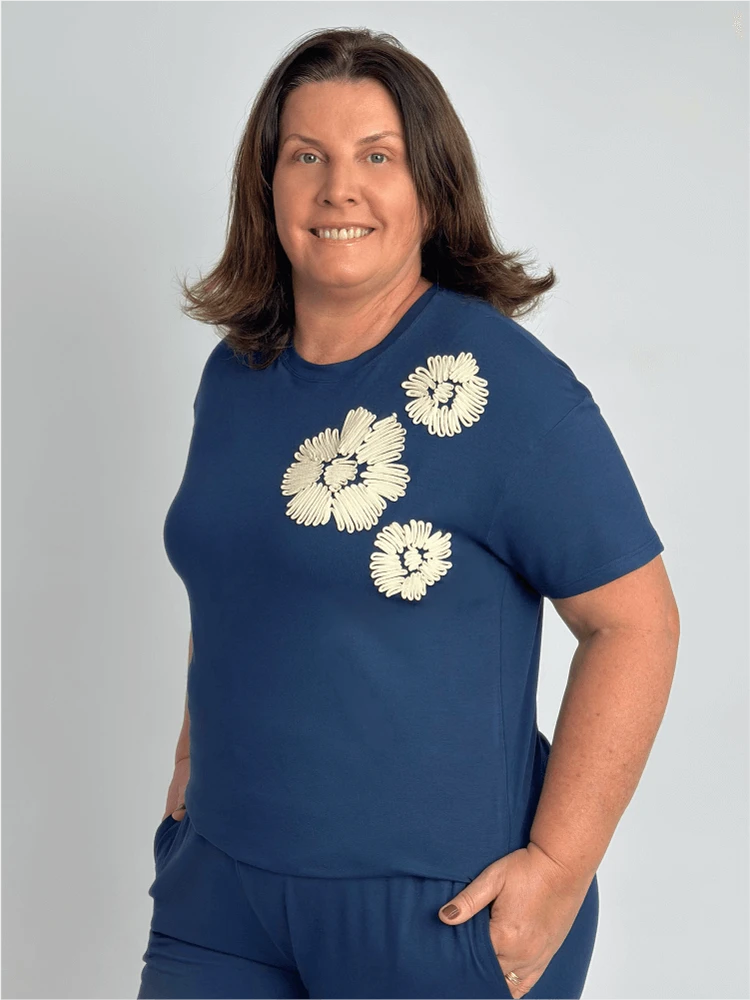 Aposte na Blusa com Bordado Manga Curta Feminina para evidenciar sua personalidade com delicadeza e conforto. Sinta a diferença de uma peça que une qualidade, design e autenticidade.