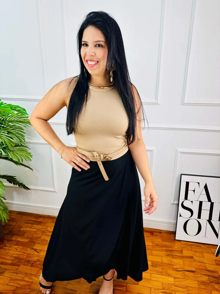 Versátil e moderna, é ideal para compor looks casuais ou sofisticados. Possui costuras no tom da peça, trazendo acabamento refinado.