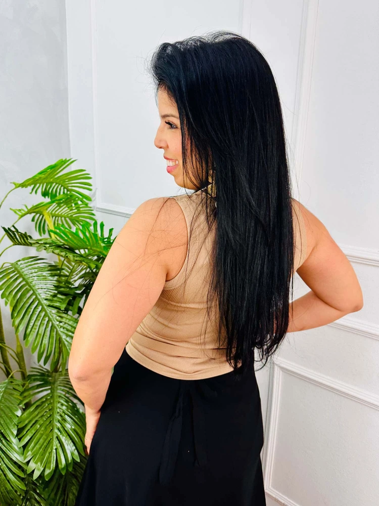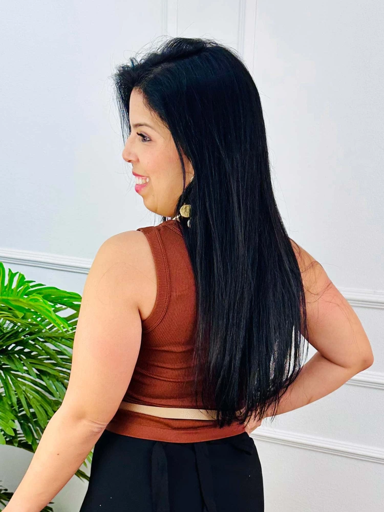 A blusa cropped canelada Ana Julia é confeccionada em tecido de qualidade premium, com caimento ajustado que valoriza a silhueta.