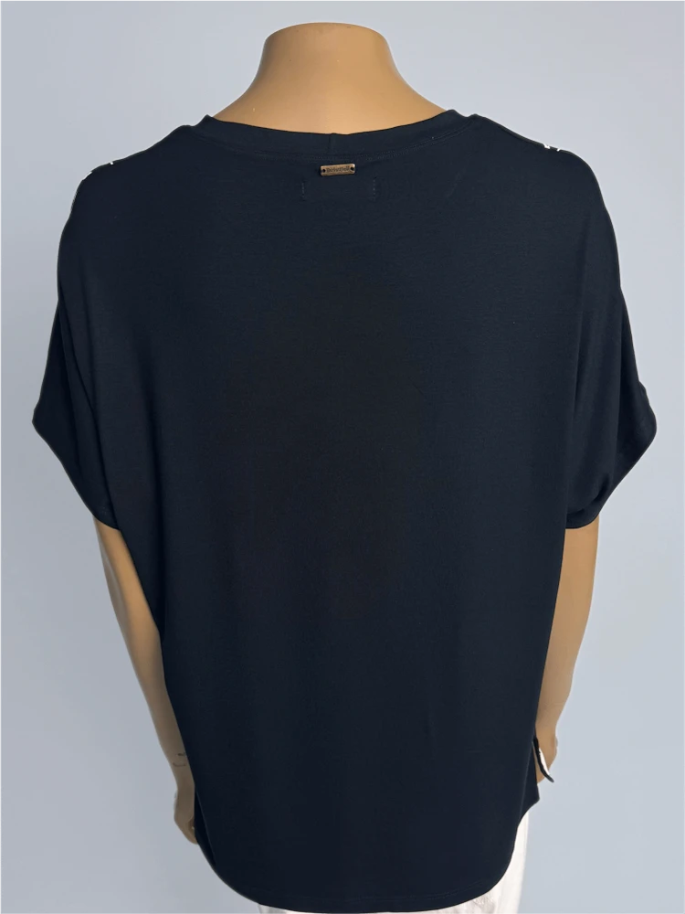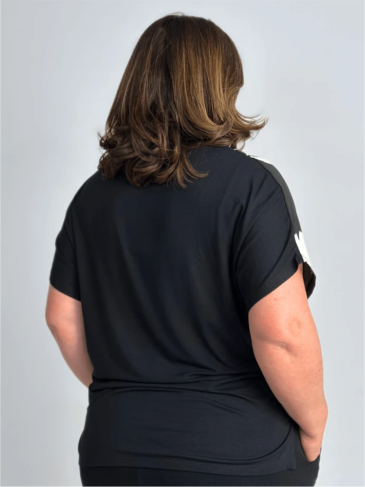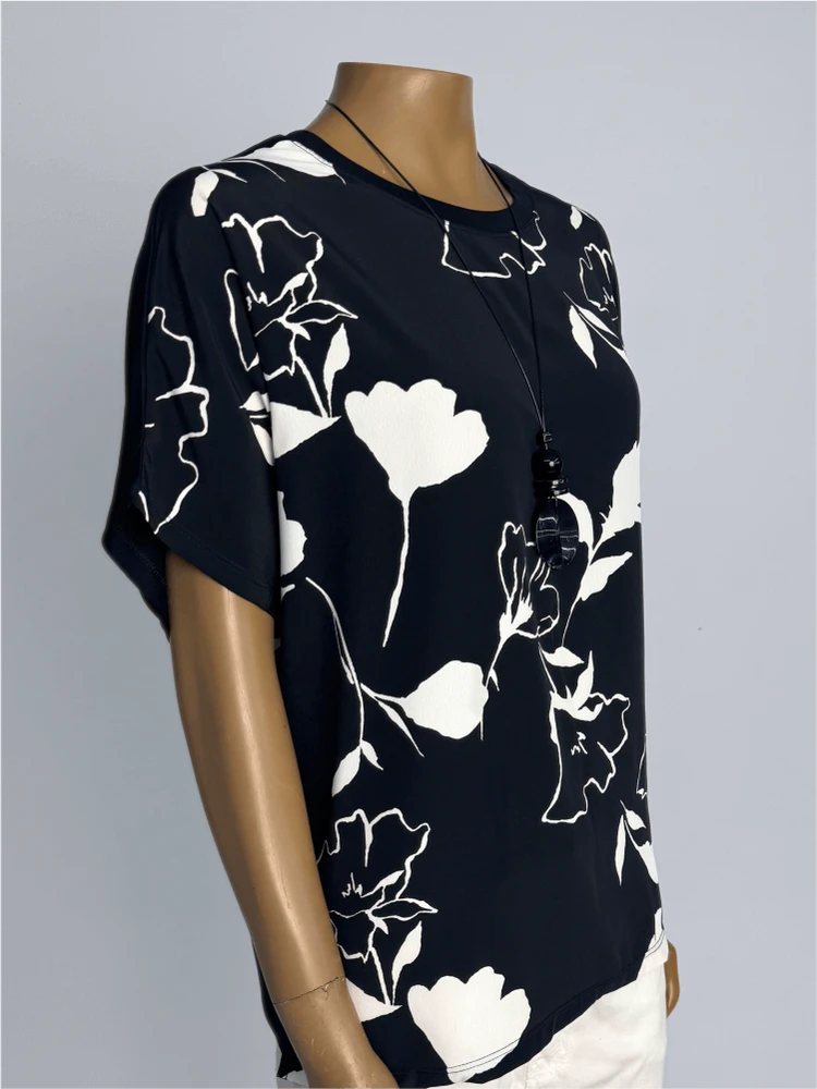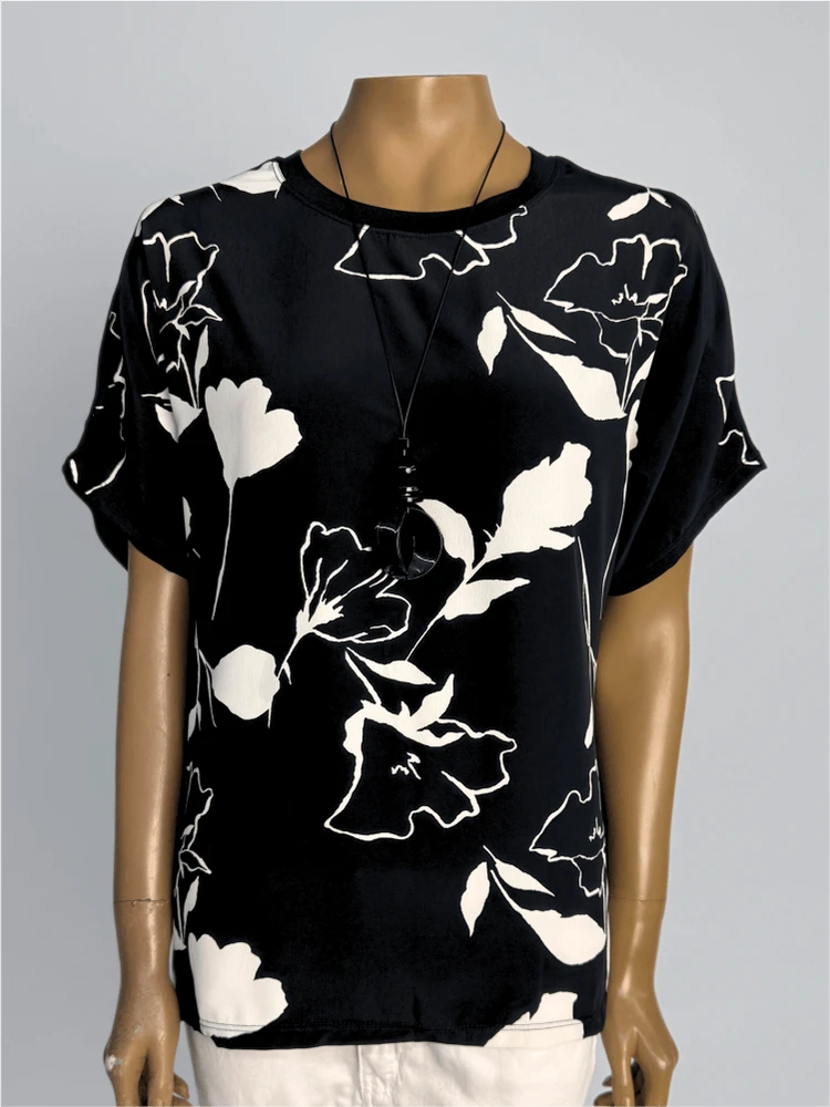Blusa Feminina Preta Estampada Gola Redonda Soltinha POLIÉSTER COM VISCOLYCRA