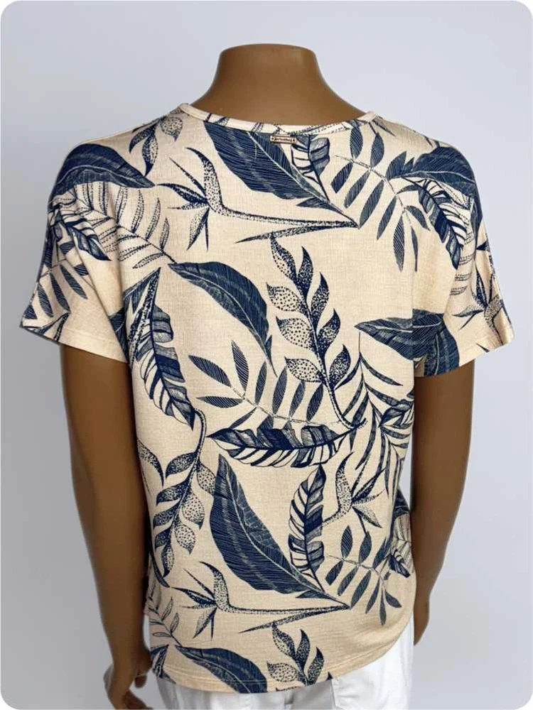 Blusa Feminina Estampada Folhagem Azul Manga Curta MALHA VICENZA
