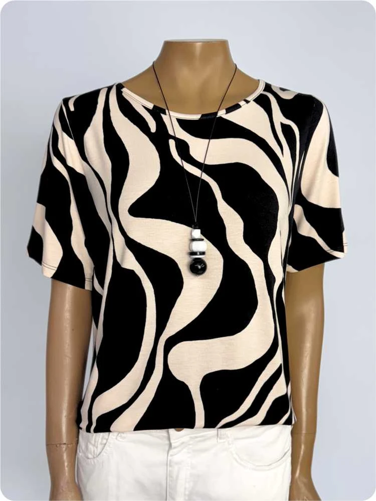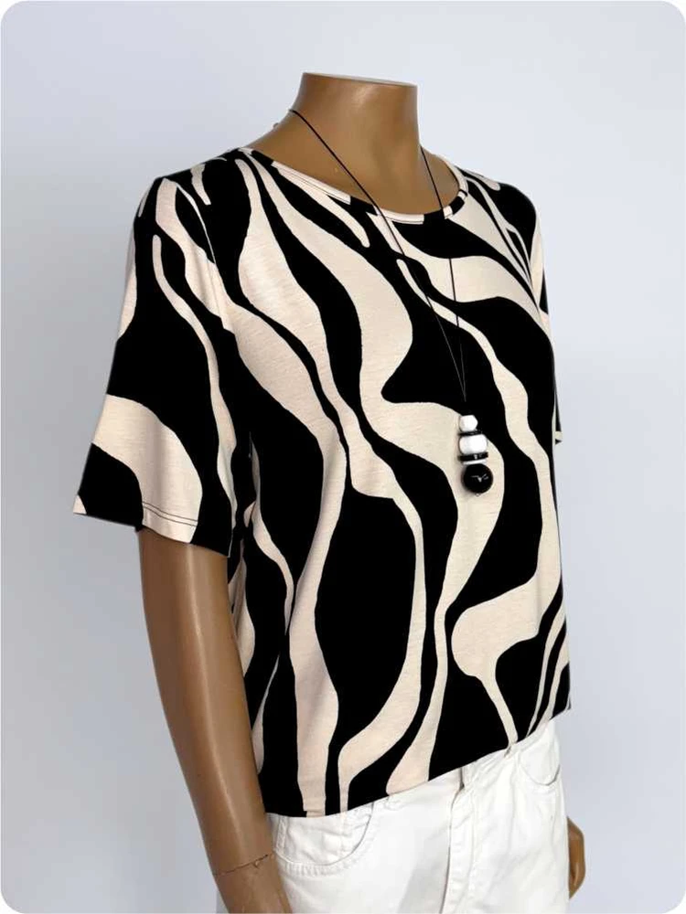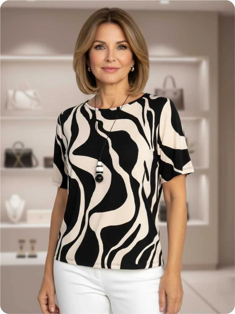 Apresentamos a Blusa Feminina Gola Redonda Estampada Malha Soltinha, a escolha perfeita para mulheres que buscam conforto e estilo em uma só peça. Seu design com estampa em preto e bege cria um visual moderno e sofisticado, ideal para ocasiões casuais ou eventos descontraídos. A malha leve e de toque macio garante frescor e liberdade de movimento ao longo do dia, enquanto o corte soltinho valoriza todos os tipos de corpo com elegância.