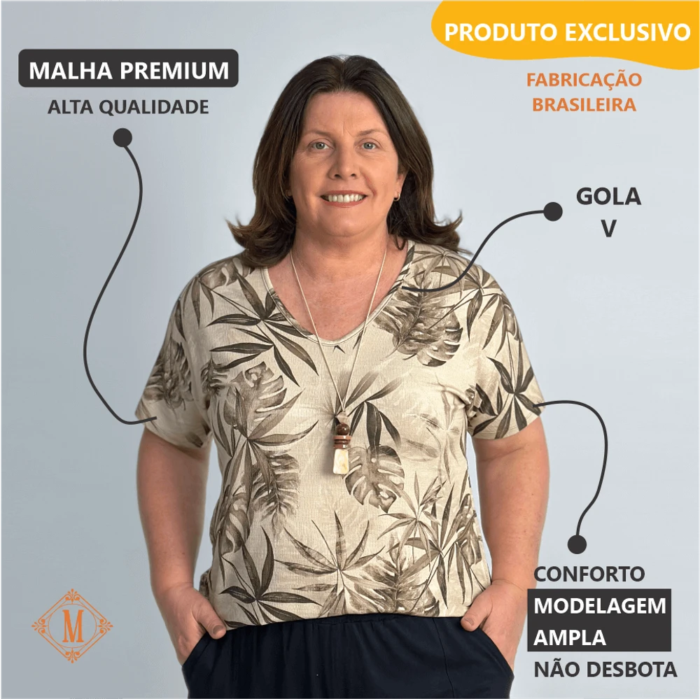 Confeccionada em malha leve, com toque macio e caimento soltinho, a blusa proporciona conforto térmico e liberdade de movimento, acompanhando a rotina da mulher com elegância e bem-estar. O destaque da peça está na gola V, que valoriza o colo e alonga a silhueta, além de oferecer um visual mais leve e feminino.