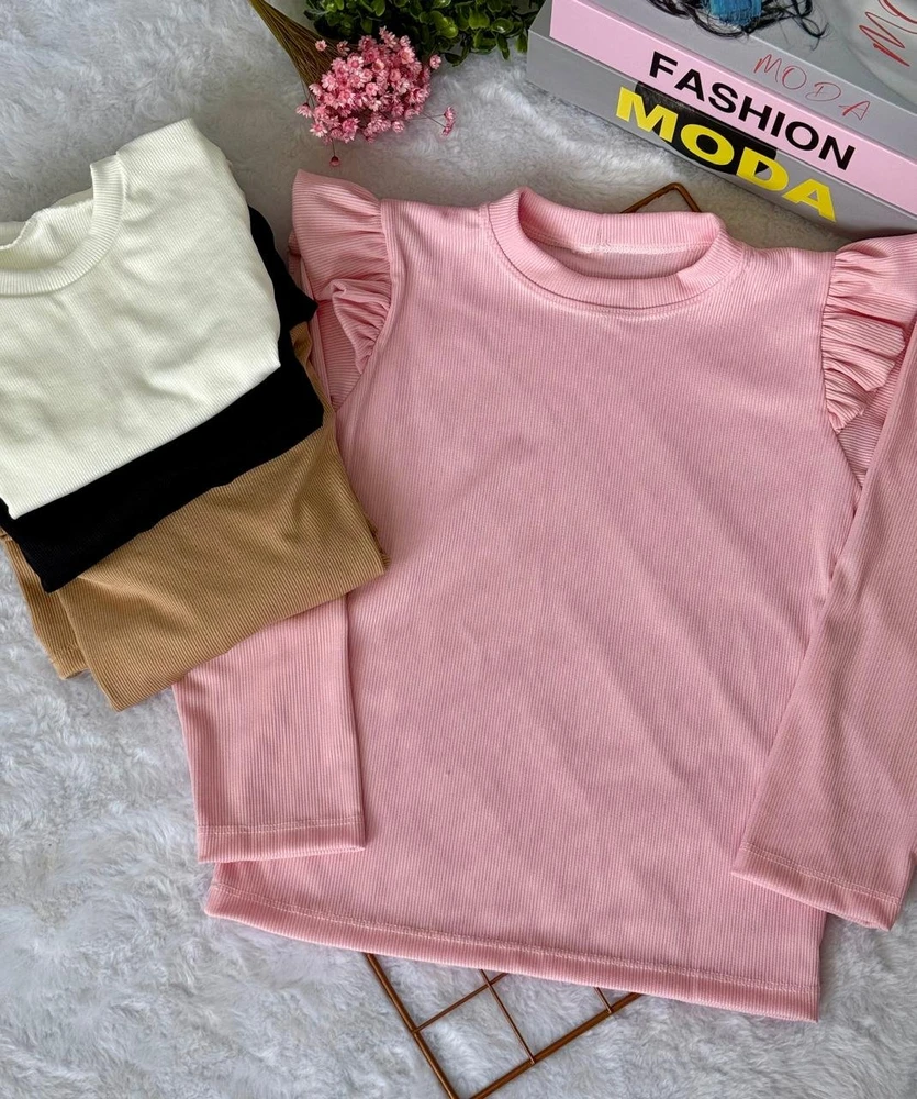 Garanta já a blusa manga longa com detalhe de babado para sua filha