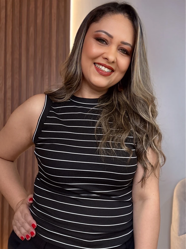 Com modelagem regata, gola mais fechada e acabamento delicado nas cavas, ela traz uma proposta moderna e elegante para o dia a dia.