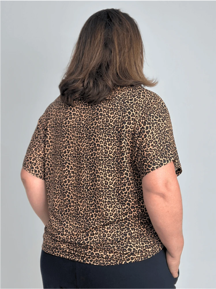 Blusa Onça Manga Curta Gola Redonda Estampada Soltinha
