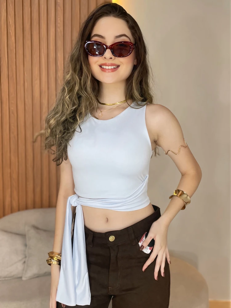 A Blusa Regata com Faixa Lateral Longa é a peça perfeita para quem ama estilo, conforto e versatilidade no mesmo look. Com modelagem regata clássica e faixa lateral extensa, ela permite diferentes formas de amarração — na cintura, lateral, frente ou costas — criando um visual moderno, elegante e que valoriza muito a silhueta.