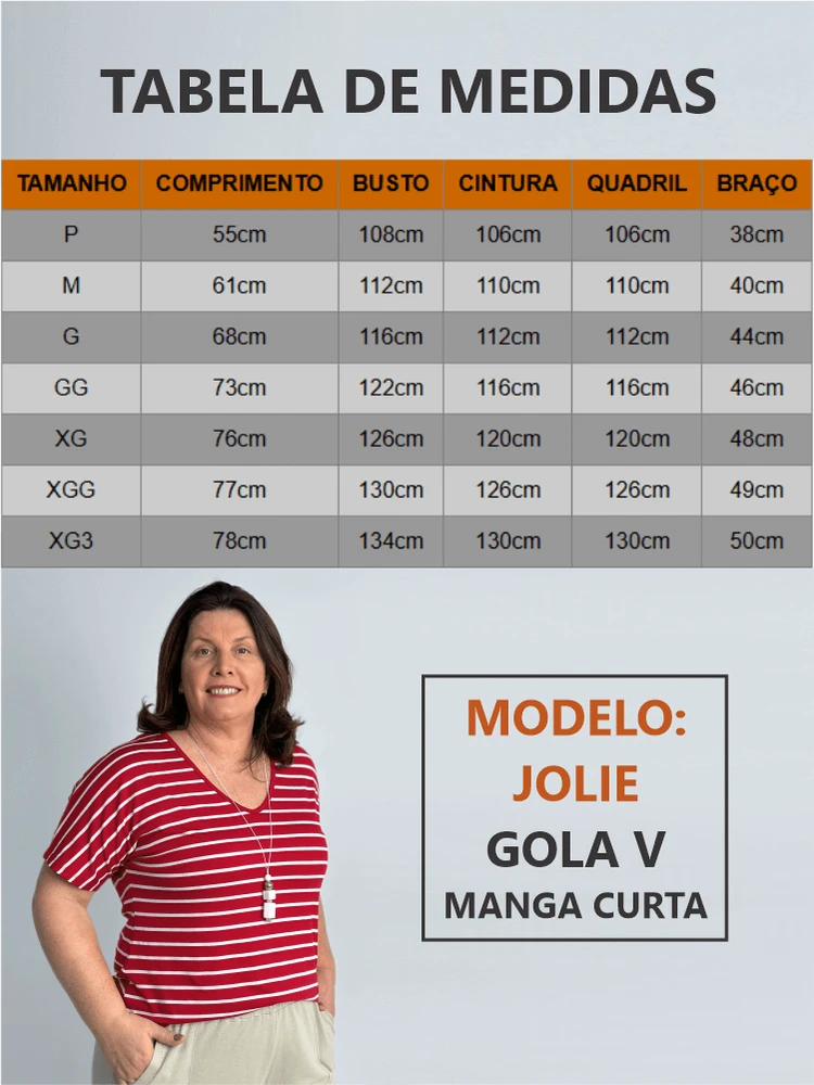 A malha soltinha garante caimento leve e toque suave sobre a pele, enquanto a modelagem com gola V valoriza o colo com elegância, alonga a silhueta e transmite leveza ao visual. As mangas curtas e a estampa clássica com um toque contemporâneo fazem dessa blusa uma aliada perfeita para o dia a dia, seja no trabalho, em compromissos casuais ou momentos de lazer.