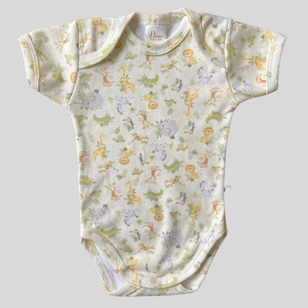 Body curto para bebê em suedine algodão egípcio estampa safari Amarelo Claro