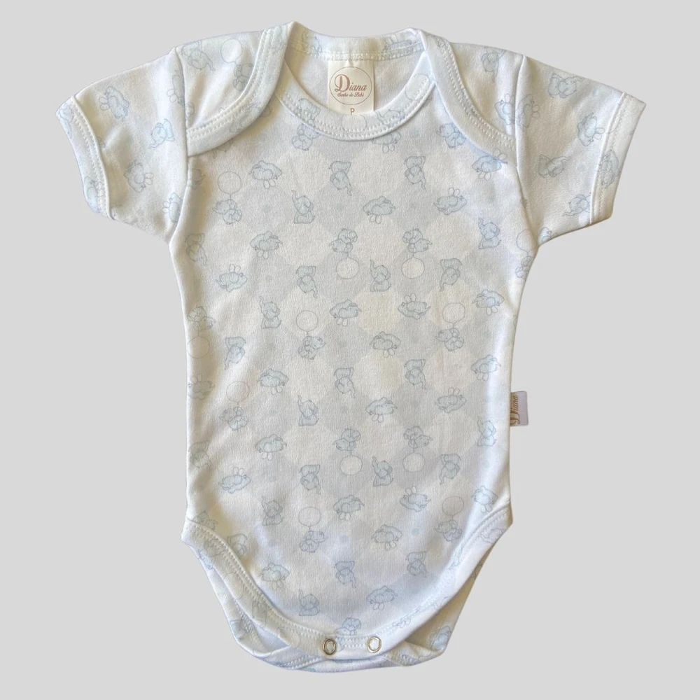 Body curto para bebê suedine algodão egípcio com estampa elefante Azul