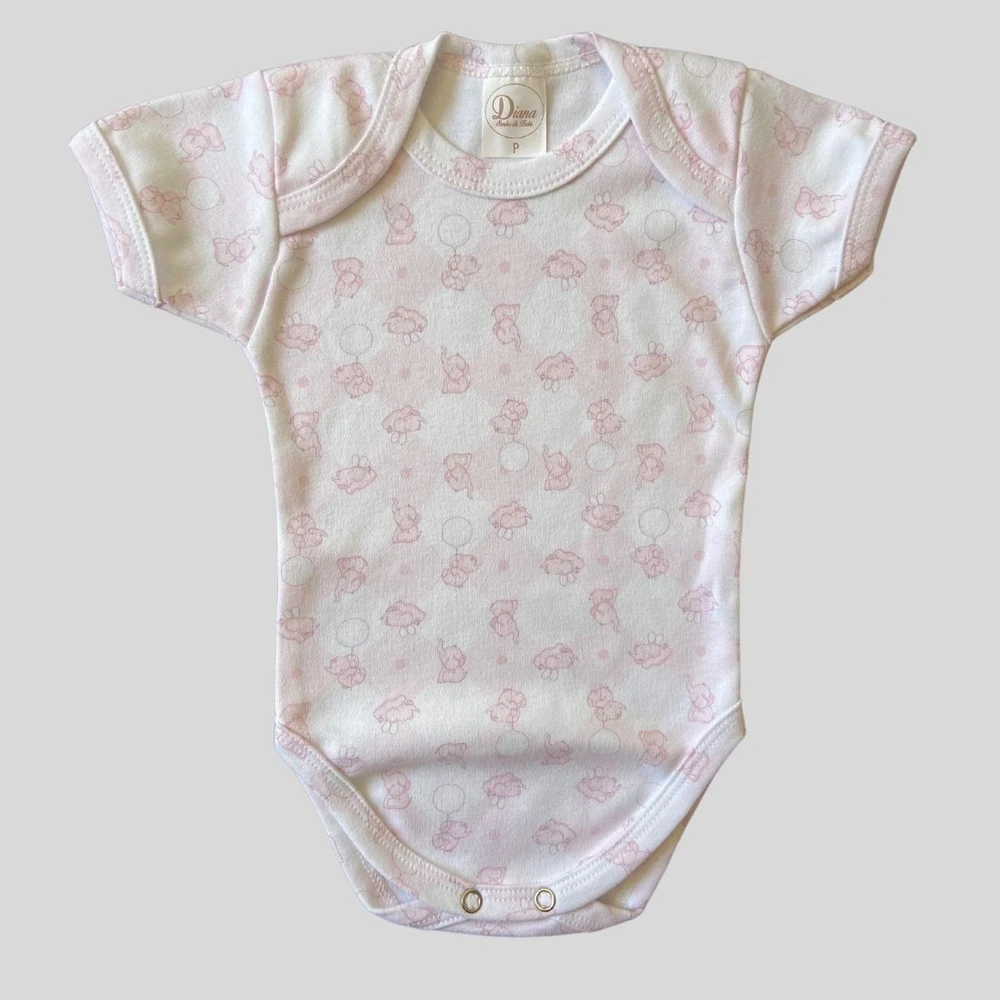 Body curto para bebê suedine algodão egípcio com estampa elefante Rosa