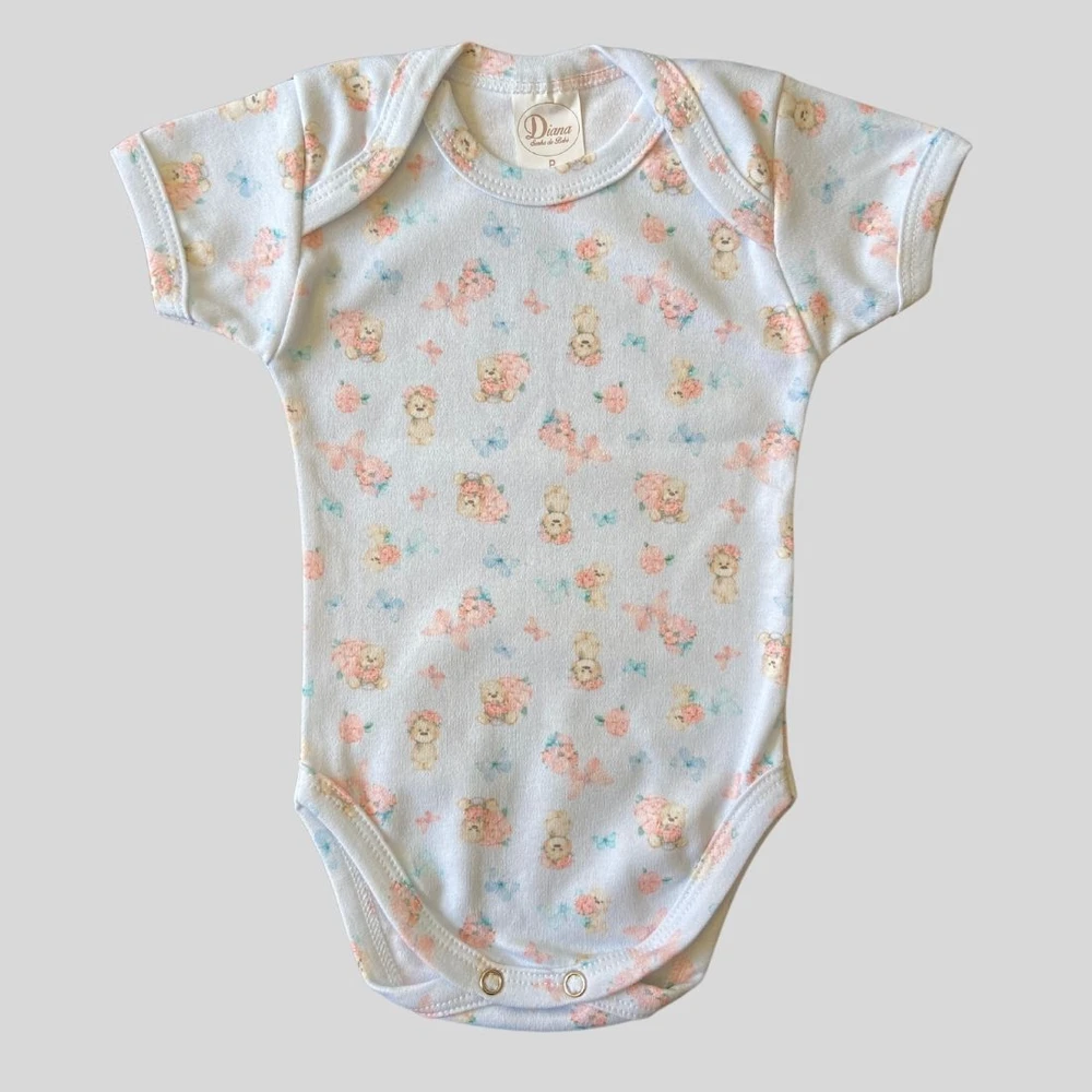 Body curto para bebê suedine algodão egípcio com estampa urso Azul