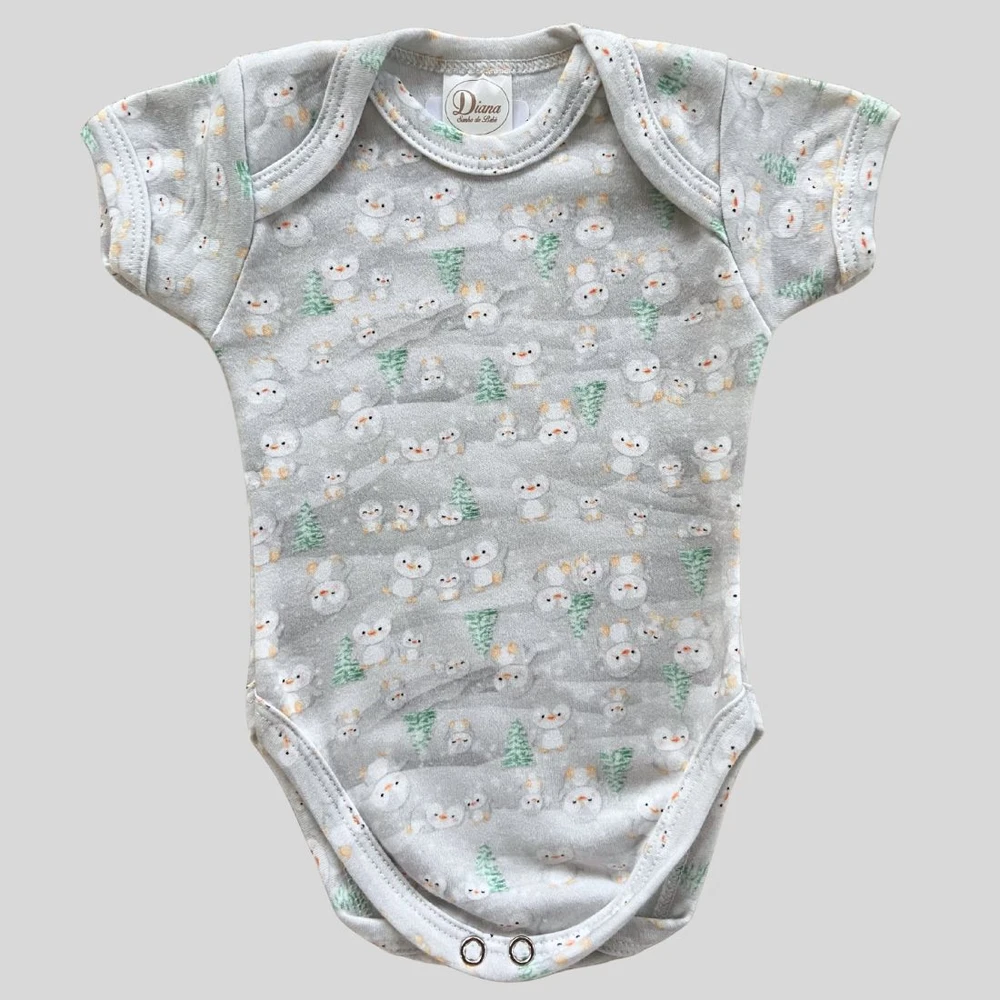Body curto para bebê suedine fio egípcio com estampa pinguim cinza