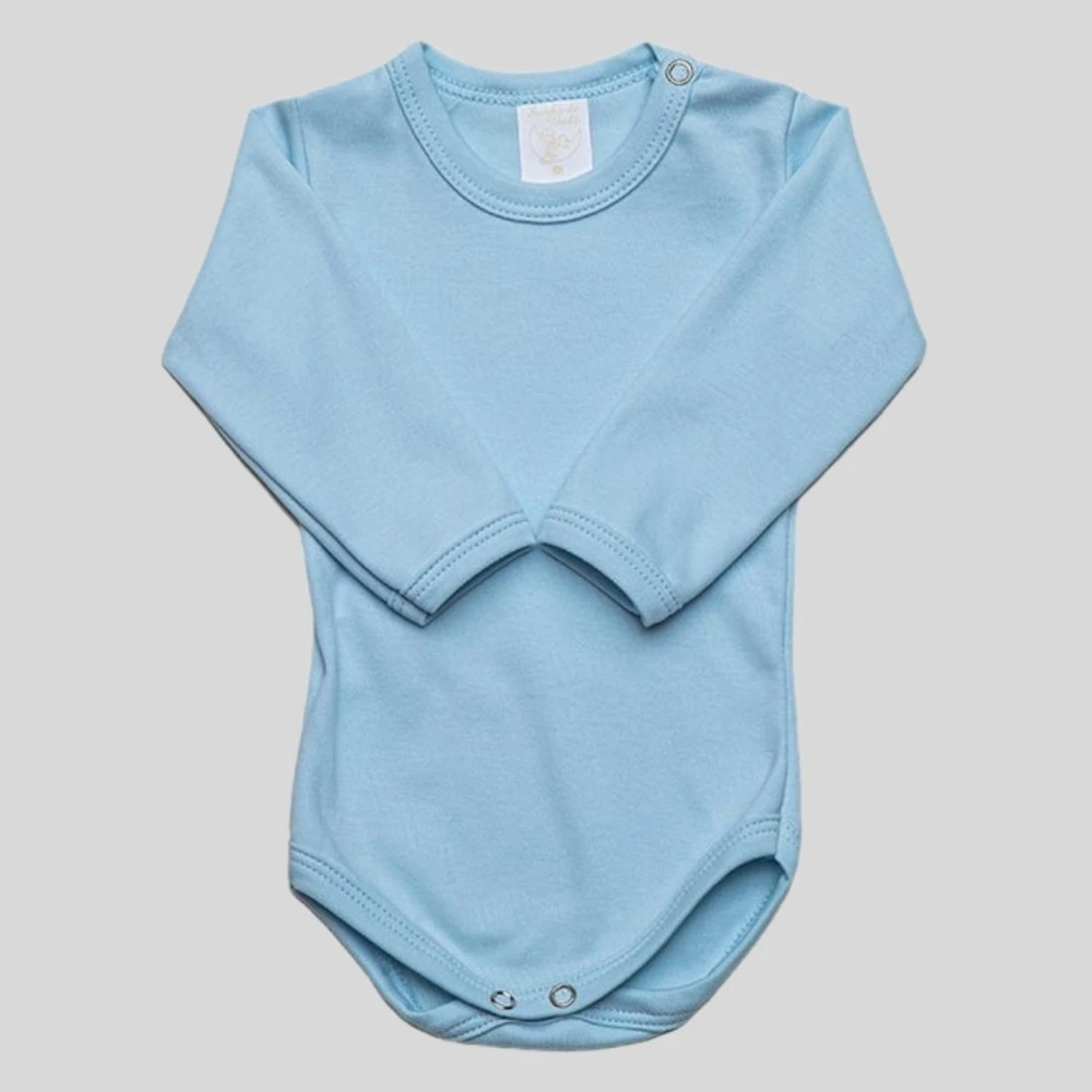 Body longo para bebê em suedine algodão egípcio Azul bebê